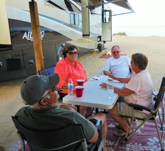 Only a few days before we had left Mulege for Guerrero Negro where it finally cooled down and many of the group did collect shells at Mario’s RV Park.  The next day we were off to Bahia de Los Angeles (LA Bay) and we were reaquainted with the heat once more. Our couple of days there were busy that included a fishing trip that caught fish, unfortunately the Yellotail were not running, however Marcos deleivered as always.  The gang hosted a Happy Hour for Lisa & I, very thoughtful of them for sure.  We also had a chance to drop into our friends, Antono & Bety Resendiz and share a couple of bottles of wine.
