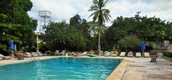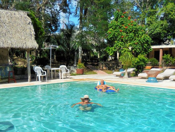 February 2nd at 9am we departed for Valladolid and Cenote Cabana Suytun. This was a short drive, less than 50 km or 30 miles. We arrived before lunch, our $250 pesos included entrance for Cenote swimming plus we had we had access to pool. Lots of swimming in both, and I enjoyed a 2 hour afternoon Siesta which was a must. Some decided to cool off before bedtime with a late swim in the pool, some with bathing suits, others dressed as they arrived. Overall a great one night stay before heading off to Cancun 100 miles (165 KM) drive.