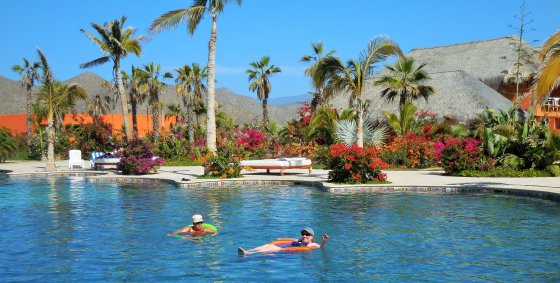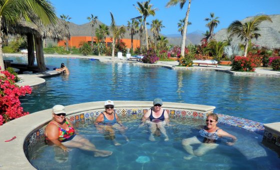 Next stop and our destination was the Los Cerritos Surf Colony and folks were ready to get settled in and hit both the pool and the beach. John, Morag and Val were keen to try the Boogey Board and the waves were breaking well on the surf. Everyone else were headed poolside, in the pool or hot tub, or all three. Also some walking on the beach and up to the Boutique Hotel on the point. A great afternoon for sure and a good way to build an appetite for La Pasadita. Just after 5 pm we were off to Pescadero and La Papadita, a very authentic Mexican Roadside eatery. Again a road was closed and we were inti the dirt, just adding more adventure to a good meal. Jose and family did a great job as always, everyone had lots to eat and thoroughly enjoyed the experience. On our return to Los Cerritos, some headed to the pool other just sat out and enjoyed the warm pacific breeze.