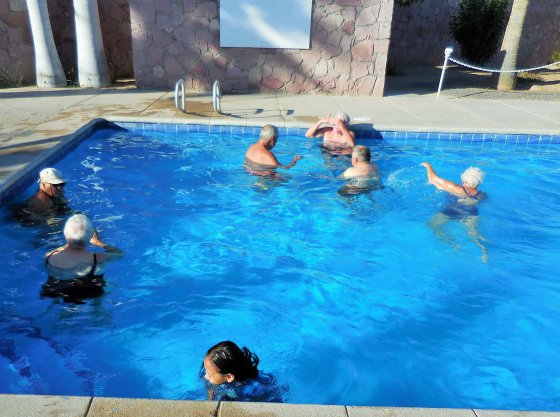 Our excursion for the afternoon dropped off the laundry, then off to the Heroic Mulege Lighthouse, Loma Linda Hotel (no access because of water main construction), the Prison Museum and the Santa Rosalia Mission and overlook. What was very interesting and surprising was the new road being built out the lighthouse given how damaged the newly installed Malecon was after Odile, wonders never cease in Mexico. We also dropped by the Orchard, which we have friends residing at and has been damaged by 4 hurricanes. This used to be an RV Park, not sure how many more floods this place can take. Later everyone was in the pool to beat the heat. At the same time some enjoyed Romans’s bar service, some had lunch and we later had dinner which was Todo Bien. Day 2 in Mulege and we made a few trips with folks into pick up laundry, bank, others to shop and look around. Poolside was in everyone’s future in the afternoon as the temperatures continued to rise.