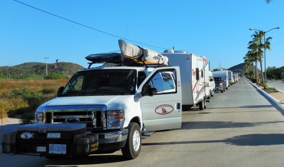Pescadero – After leaving Cabo San Lucas our next stop was the Los Cerritos Surf Colony, but first we needed to get out of Cao San Lucas. Shortly after leaving the RV Park and heading for Hwy 19 we ran into a detour, unfortunately without much signage to get us to back on track. I did my best guess and then we had a Taxi driver telling us to follow him, we did and it all turned out well, back on track. We did stop at the Blanket Factory, a visit we always look forward to, Afrain was ready for us with the freshly made buns right out of his beehive oven. The gang enjoyed the stop and Afrain certainly appreciated the business and meeting “Mama Sylvia” again.