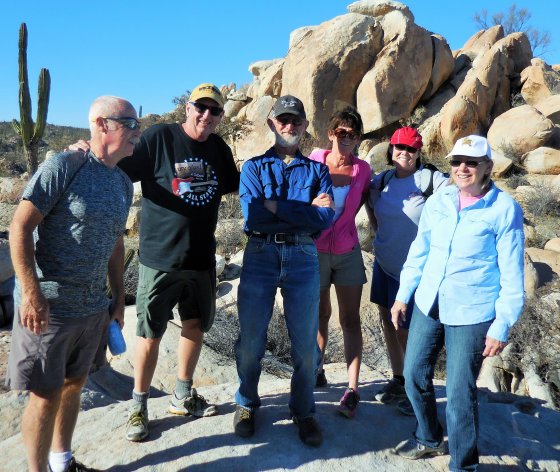 Next stop Catavina where the road had been patched, not repaired or repaved, still better than before. The arroyos at each end of town are both better than we have seen in some time, one day they will install bridges which are long overdue. Shortly after pulling into Santa Inez Ralph showed up, always eager to lend a hand if need be. Our excursion took us to the Cave Paintings than later dinner at the Cantina, dinner was good and inexpensive at 80 pesos each. 12 or 13 RVs made Santa Inez their stop that night, some came in late at night and left early, in a hurry to get south I guess?