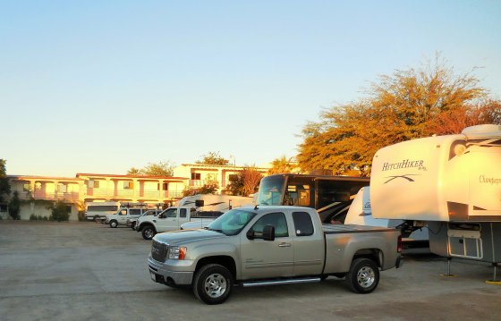 Day 8 we were Loreto bound, home of both Baja and Alta California. We really enjoy this short drive along the bay and then crossing over to adjacent to the mountains. All without incident or problem until we hit town. After crossing off the parallel road over Mex 1 we heard a pop and jetting air, yes another flat tire, this time on the trailer. Fortunately this was excellent spot for the caravan to pull off and 30 minutes later thanks to Dennis, Ron and others we were on our way. We drove onto the Malecon to find out it was blocked off for Carnaval, no problemo we turned at Benito Juarez then onto Davis for our lineup in front of the hotel. We took everyone in, one at a time, plus we had others arrive at the same time including Paul & Lise form our January tour who had dropped off in La Paz. Later we toured town and went to the Ley Express ATM. It was Valentines Day so we went out for dinner at Isla’s joined by Roland & Janice (it was great). Other also went to Islas Restaurant, some to La Mision. Caranaval was on so we checked it out and caught a performance on stage before turning in for the evening.