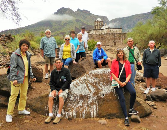 We have had an actioned packed tour with whale watching in Guerrero Negro, Malarrimo Eco Tours do such a good job. The entire gang went, the lagoon was like glass and they were greeted by over 2000 grey whales in the bay. Great photos and an experience of a lifetime they will never forget, many can now say “I touched a whale!” Following their return we headed off to San Ignacio, a date palm oasis. We stopped briefly at the Military Checkpoint north of town and before you could say Baja Amigos we departed for the village. Date cakes and Tortillas were very popular with most and our return to Rice & Beans we made reservations for dinner. The group consensus was the same as those that went before, Rice & Beans margaritas were fabuloso! .