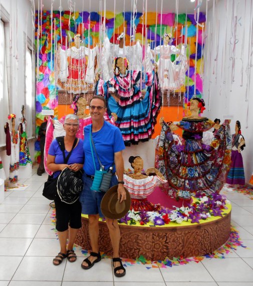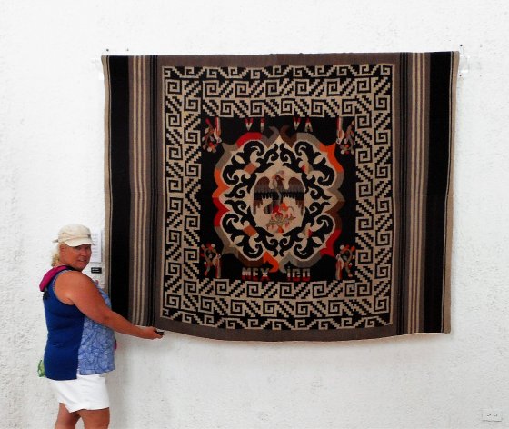 After 3 nights onwards we traveled back to La Paz and Campestre Maranatha with only a short stop at Walmart for supplies. Gabriela the laundry angel and Omar the water amigo were at the campground shortly after our arrival. After getting settled we all had lunch and headed into La Paz and a stop at Ibarra’s Pottery. Vicky and her Mom were in and we had a good chat. The Gang enjoyed this stop, easy to see with all the purchases. The La Paz Malecon is always impressive, good to see they added a new sign, similar to what we have seen in other Mexican cities. Day 2 in La Paz we left early at 9:30 am and dropped everyone at the Mercado Madero. I parked in my usual spot in front of the Allende Book Store, walked to the Zocalo and took in the exhibits at the old Government House. Great exhibits, one was on the regional women’s dress from across Mexico, the other was a collection of Nationally inspired Sarapes featuring different historical versions of the Mexican Flag Centerpiece and colours, some made in 1830. Later saw some of the folks around during our city visit, Lisa and I had a Hamburger and Hot Dogs at our favourite stand, others had lunch at Hotel Perla.